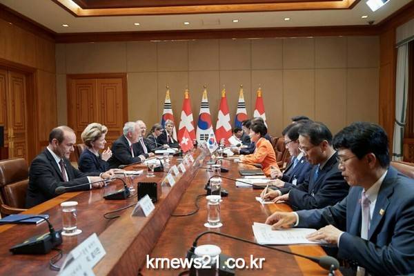 이에 대해 스위스 대통령은 양국이 함께 시장개방이 확대되도록 서로 지원함으로써 세계의 보호무역주의 확대 움직임에 대응해가자고 하자고 화답했다.