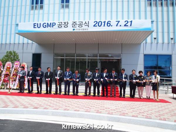 한국팜비오는 21일 서충주 신도시 내 첨단산업단지에서 남봉길 회장과 내빈, 임직원, 시공사 관계자 등 200여명이 참석한 가운데 EU GMP 신 공장 준공식을 가짐으로써 유럽 지역으로의 진출을 본격화 한다고 밝혔다.