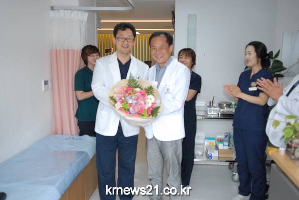 성공적인 복강경 수술 1000례를 기념하여 27일, 이병관 병원장, 이순주 진료원장, 박종혁 부원장, 신경외과 양기승 소장, 이석 소화기 센터장, 각 병동 수간호사들이 축하 메시지와 함께 꽃다발을 전달하는 행사를 가졌습니다.