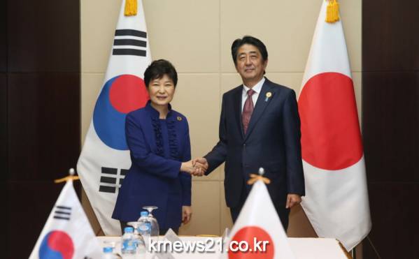 아세안 관련 정상회의 참석을 위해 라오스를 방문 중인 박근혜 대통령은 7일 오후(현지시간) 아베 신조 일본 총리와 한·일 정상회담을 하고 북한·북핵 문제와 양국 관계를 포함한 상호 관심사에 대해 긍정적인 분위기에서 의견을 교환했다고 8일 청와대가 밝혔다.