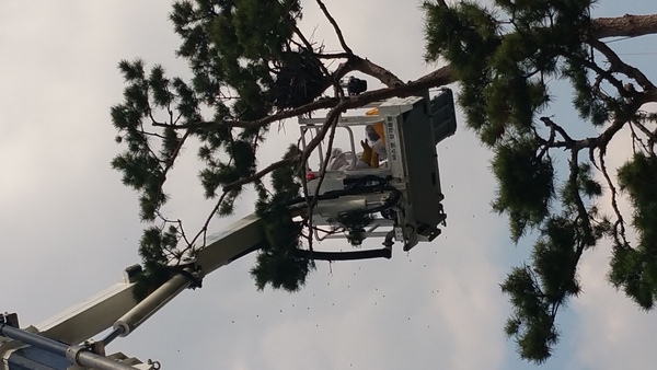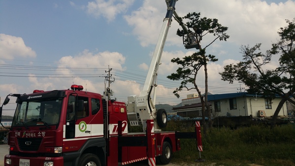 이번 말벌집 제거 작업에는 정읍소방서 구조대원들이 고가굴절차를 이용하여 높은 소나무 가지에 위치한 말벌집을 제거하고 벌집제거로 인한 2차 위험요소들을 제거하는 등 현장안전조치 후 마무리 되었다.