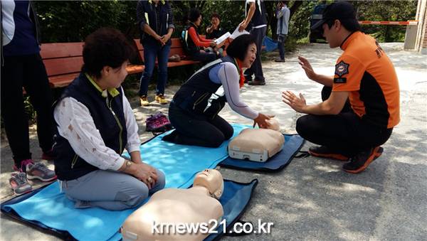 ▲ 등산목안전지킴이강원석 소방서장은 “대부분의 산악사고가 안전수칙을 무시하거나 본인체력에 비해 무리하게 산행을 하다 발생함으로, 스스로 체력에 맞는 등산코스를 선정하고 필요한 장비를 적절히 구비함은 물론 만약의 경우를 대비하여 등산로에 설치된 119산악구조표지판 번호를 미리 알아둘 것”을 당부하였다.
