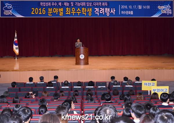 여수시(시장 주철현)가 2016년도 분야별 최우수 고등학생을 선발해 교육경비를 지원했다.