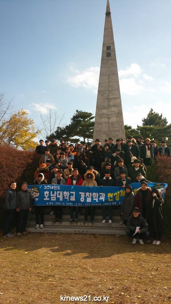호남대 경찰학과 학생 120여명은 지난 24일 순국선열과 호국영령의 숭고한 희생정신을 기리고 애국정신을 계승하기 위해 고창 충혼탑을 찾았다.