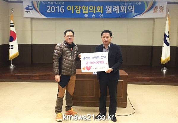 이날 율촌면 이장단협의회(단장 김동열)와 새마을남녀지도자협의회(회장 이기전)에서 각각 50만원과 30만원을 기부했으며, 청산2구 주기노 이장도 50만원을 종잣돈에 보탰다.