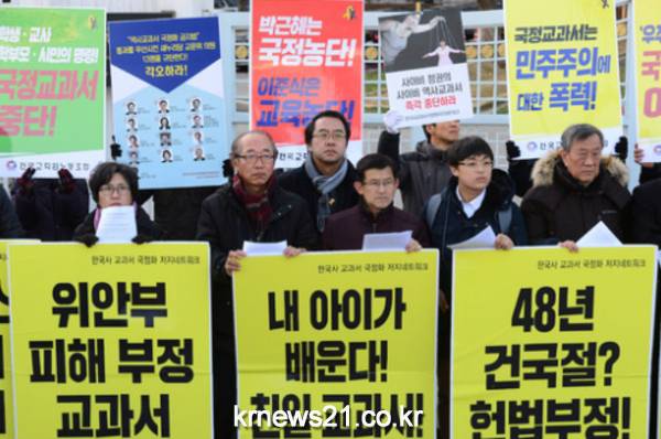 이들은 “오늘 박근혜 정권은 우리 국민을 상대로 또 한 번의 공격과 범죄행위를 저질렀다”며 “박근혜 정권에 부역해 친일 독재를 미화해온 대다수 집필자들이 대학에 몸담고 있는 교수들이라는 점에서 참담함을 감출 수 없다”고 말했다.