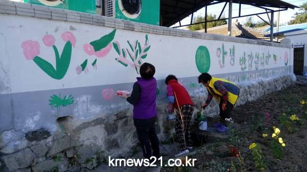 대산면 반월마을(이장 정현덕)은 1일 아름다운 마을길 조성의 일환으로 마을길에 국화를 식재하고, 마을 벽화그리기 작업을 진행했다.