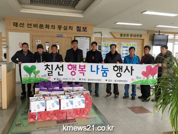 칠보면 칠선 김정현대표가 지난 9일 지역 내 저소득에 전달해 달라며 선물 꾸러미 32박스(배즙, 생강차, 장아찌)를 기탁했다.