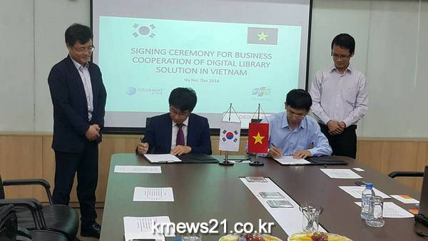 국내 전자도서관 솔루션 및 학술 연구 분야 정보서 비스 전문업체 ㈜퓨쳐누리(대표이사 추정호)가 14일 베트남 최대 IT기업인 FPTsoftware와 베트남 시장을 대상으로 퓨쳐누리 전자도서관 솔루션에 대한 기술협력 및 공동 영업을 위한 MOU를 체결하였다. FPTsoftware는 베트남인민경찰대학 전자도서관 시스템 구축 프로젝트를 공동 수행하였다.