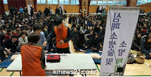전주덕진의용소방대 연합회는 12월 21일 늦은 오후 전주 혁신도시에 위치한 양현고등학교를 방문하여 심폐소생술 및 소방체험 교육을 실시했다.