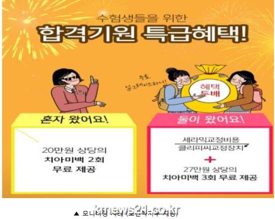 집중점검대상이 되는 의료광고는 비급여 진료항목에 관한 가격할인이나 각종 검사나 시술 등을 무료로 제공한다는 내용과 친구나 가족과 함께 의료기관을 방문할 경우 각종 혜택을 부여한다는 내용 등 위법소지가 상대적으로 높은 광고 등이다.