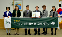 담양군이 여성가족부가 주관한 2016년 가족친화인증기관 평가에서 ‘우수기관’으로 선정됐다.