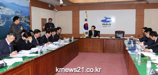 여수시는 매주 금요일 오전 8시 30분부터 국·소·단장과 보좌기관 부서장이 참석한 가운데 다가오는 주의 주요 업무를 공유하는 주간업무보고회를 갖고 있다.