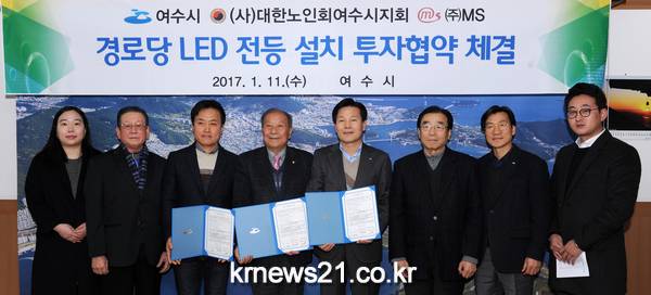 여수시(시장 주철현)와 주식회사엠에스(대표이사 고용배)가 지역 내 경로당에 LED전등을 설치하는 업무협약을 체결했다.