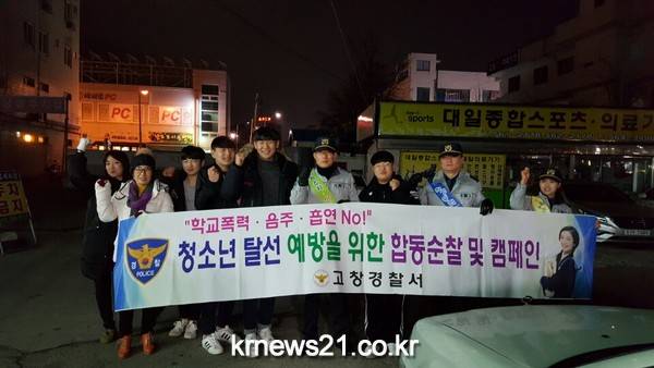 고창경찰서에 따르면 지난해 12. 19일부터 1. 31까지 연말 및 동계방학 기간을 맞아 청소년 선도․보호 활동 전개로 청소년 비행 예방 및 유해환경을 사전차단하기 위해 교육청(학교), 패트롤맘 등과 합동으로 청소년 밀집지역 및 우범지역 순찰 등 가시적 예방활동과 더불어 선도․보호활동 및 캠페인을 전개하며 청소년 유해환경 제거에도 노력하고 있다.