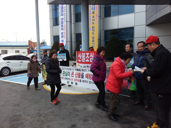 이번 산불예방 캠페인은 봄철 산불조심기간(2.1~5.15) 동안 산불예방에 대한 공감대 형성과 경각심을 고취시키기 위해 마련됐으며, 홍보전단지 배부와 산불방지 주민교육을 병행하여 실시했다.