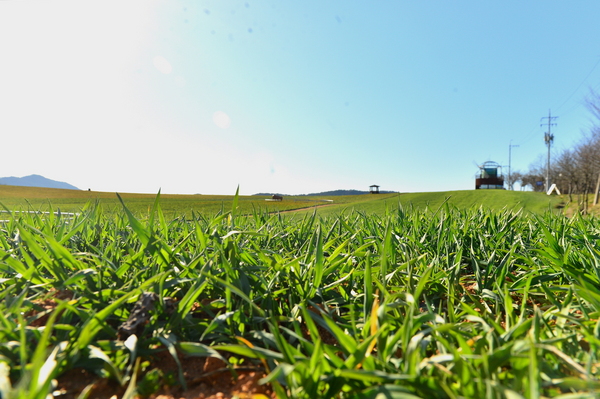 성큼 다가온 봄 햇살과 함께 고창군 공음면 학원농장 일원에 청보리 새싹이 얼굴을 내밀고 있다.