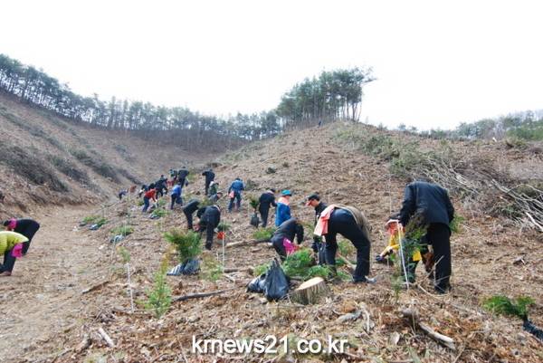 4만5000본을 식재하는데 오는 31일에는 청라면 옥계리 임지 일원 2.6ha에 편백을 식재하는 식목일 나무심기 행사를 진행하며 시민과 함께