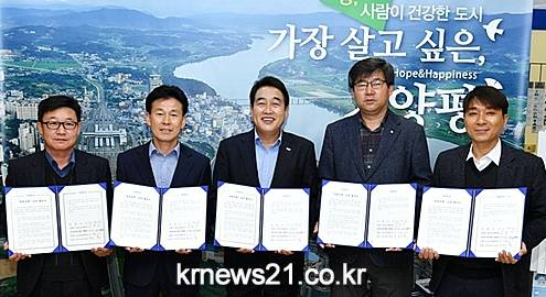 경기 양평군 김선교 군수(가운데)는 28일 군 전문건설협회, 전국건설기계 군 연합회, 군 토목설계협회, 양평 지역건축사회 등 4개 민간단체와 청렴 실천 협약을 체결했다.