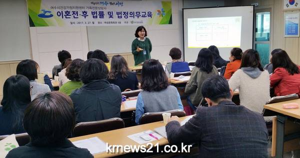 여수시(시장 주철현)가 시민에게 전문적인 가족문제 상담이 이뤄지도록 가족전문상담사를 대상으로 ‘이혼 전․후 법률 및 법정의무교육’을 실시했다.