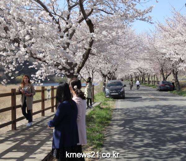 해양성 기후로 수도권과 남부지방 보다 상대적으로 늦게 개화하는 보령 주산 벚꽃 길이 봄을 秀 놓았다.보령댐 하류 웅천천에서 시작해