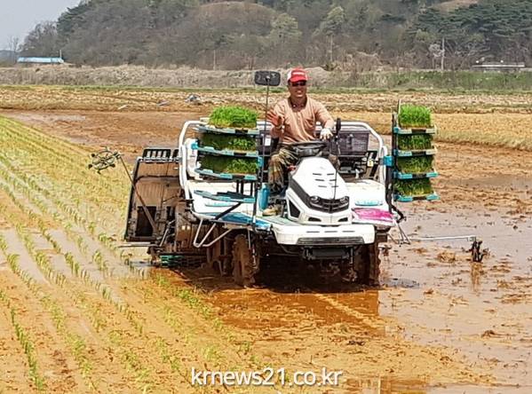이날 모내기는 지난해보다 6일 먼저 이뤄졌으며, 5개 농가로 구성된 청소영농조합법인 대표 이양표씨가 주인공이다.