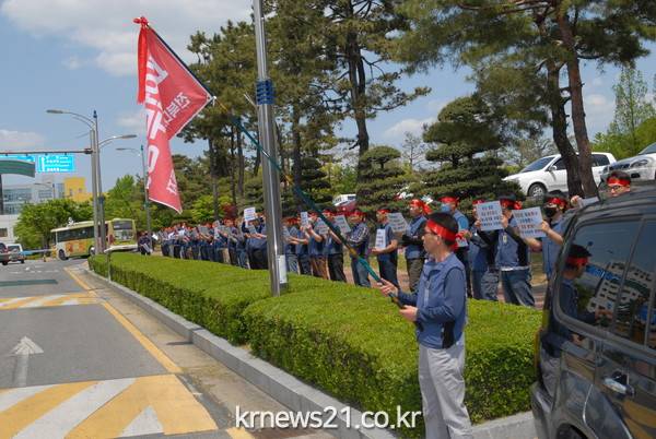 오늘 4월27일 오후12시경 전북대학병원 민주노총 전북일반노동조합은 시설관리 노동자들의 체불임금 1억을지급하라고 하였다.