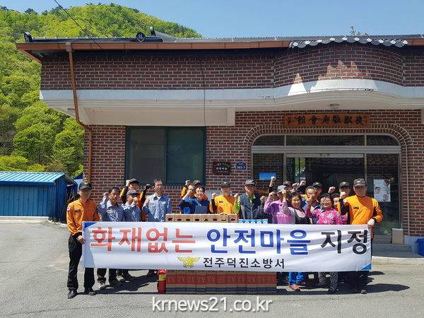 전주덕진소방서는 4월 28일 오전 11시부터 완주군 운주면 고당리 피당마을에서 소방공무원 ․ 의용소방대원 ․ 한국전기․가스 안전공사 직원 등 20여명이 참여한 ‘화재없는 안전마을’ 행사를 가졌다.