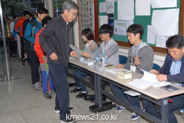 시내버스 기사데 6시20분차를 운전 하는 기사데 첫 투표자가되어 기분이 참좋다고 말씀하셨다.덕진동 제2투표소 선거 관리자는 2천7백명중 사전투표를 1천명 하였다고 말하였다.