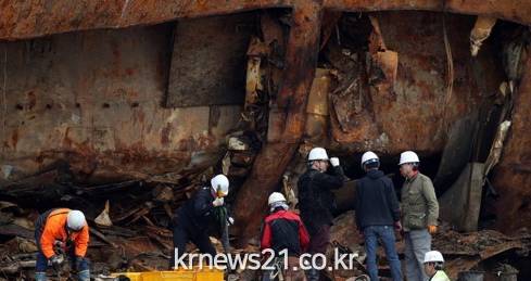 이 구역에서는 전날 1시간여 간격으로 뼈 2점이 수습됐을 뿐 아니라 침몰 충격으로 생긴 층간 협착이 심해 오히려 유골이 이동하지 않고 몰려있을 가능성이 있기 때문이다.
