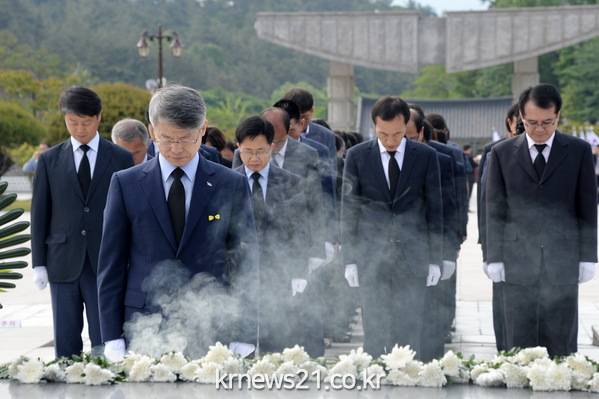 민형배 광산구청장은 16일 오전 공직자들과 함께 국립5·18민주묘지를 참배했다.