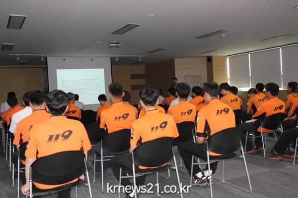 이 날 외상후스트레스(PTSD) 교육은 3교대로 인한 야간근무로 인한 수면장애(불규칙, 불면증 등), 자살 및 교통사고 현장 목격 등의 각종 현장활동에서 겪고 있는 정신적·신체적 트라우마로 정신건강관리가 특히 중요한 외근소방공무원을 중점적으로 “근무 중 당한 마음 손상,, 어떻게 치료받을 수 있나요?”라는 주제로 진행되었다.