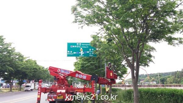 군은 교통량이 많은 국도1호선과 24호선 등 국도변과 주요 지방도로변에 있는 가로수와 조경수에 대한 대대적인 정비에 착수, 6월10일까지 교통장애 수목에 대한 전지전정과 제거작업을 실시한다고 밝혔다.