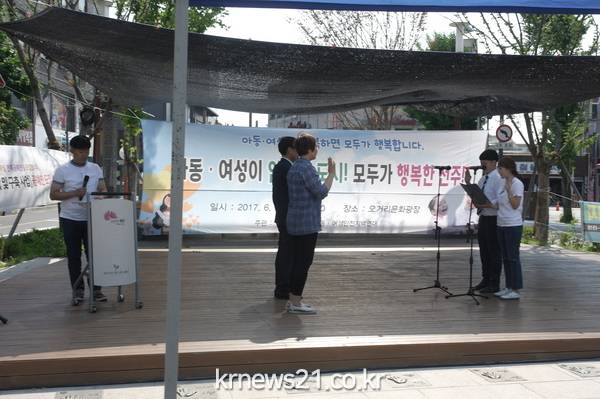 이날 행사에서 참석자들은 폭력추방 행복지킴이 선서와 전주성심여중 댄스동아리 엘핀의 공연에 이어, 함께 아동학대와 성매매, 가정폭력, 성폭력 추방 등에 대한 강한 결의를 다짐하는 퍼포먼스를 연출했다.