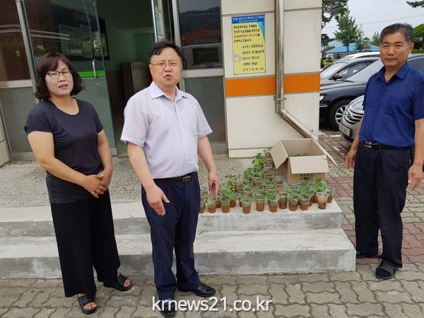 20일 공무원들이 1개월간 정성스레 직접 키운 연모종 200여개를 초등학생 및 관내 주민에게 나누어 주었다. 연모종은 화양면