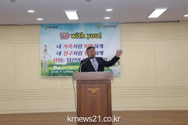 전주덕진소방서장은 “간부들이 아닌 현장대원들 95명이 뽑은 값지고 영예로운 상이라며 진심으로 축하한다.”며 격려하고 “이 뜻깊은 상을 수여하게 되어 나 또한 더욱 감회가 새롭다.”며 “앞으로도 지금 만큼 열심히 뛰어줄 것”을 당부하였다