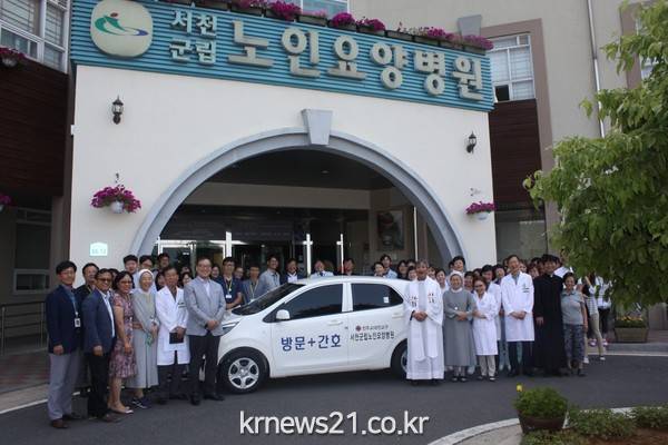 차량을 구입하여 지난 21일 서천군보건소(김재연 소장)와 서천어메니티복지마을(맹상학 총원장신부) 직원들이 모인 자리에서 차량 축복식을 진행했다.