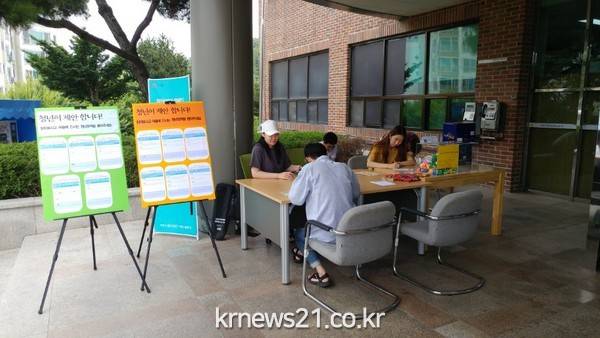 구직을 위해 도서관을 찾는 전주시 청년들이 자신과 비슷한 처지에 놓은 다른 청년에게 응원의 메시지를 릴레이로 전달하는 캠페인이 열렸다. 전주시 청년희망단이 지난 29일 인후도서관에서 도서관 이용 청년들을 대상으로 ‘청년희망릴레이 캠페인’을 전개했다. 청년 희망릴레이 캠페인은 전주시의 청년정책제안기구인 청년희망단이 직접 기획하고 진행하는 것으로, 전주지역 시립도서관을 찾아가 구직활동을 위해 도서관을 이용하는 청년들에게 희망메시지를 전달하고, 전달받은 청년이 다음 달 방문할 도서관의 이름 모를 청년을 위해 희망메시지를 작성하는 릴레이 형식의 응원행사이다.