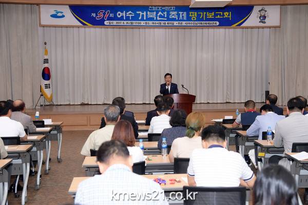 지난 26일 여수시청 회의실에서 열린 평가보고회에는 주철현 여수시장을 비롯해 축제전문가, 유관기관장, 거북선축제보존회 임원 등 100여명이 참석했다.