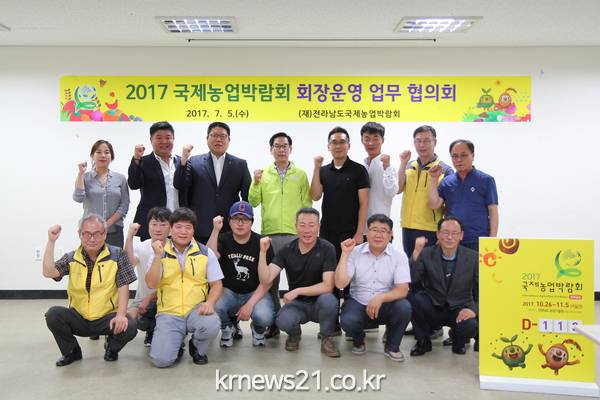 2017국제농업박람회 사무국은 오는 10월 26일 개막하는 국제농업박람회 행사장의 안전과 효율적 진행을 위해 5일 운영 대행사 간 성공 개최 다짐 결의대회를 열었다.
