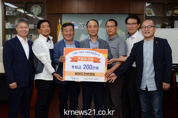 광산구에 따르면 12일 비아동 기업·상공인 24명이 설립한 ‘비아 도천번영회’가 오전 10시 성금 200만 원을 투게더광산 나눔문화재단에 기탁했다. 지난 2013년 발족한 이 단체는 지역에서 얻은 수익 일부를 환원한다는 목표로 불우이웃 돕기, 장학금 지원, 어버이날 선물 증정 등을 매년 이어가고 있다.
