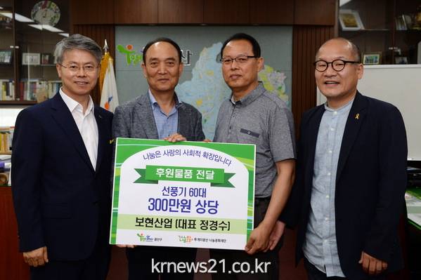 태양광 발전과 컨테이너 제작 등을 전문으로 하는 보현산업(대표 정경수)은 같은 날 오전 10시30분 선풍기 60대(300만원 상당)를 투게더광산 나눔문화재단에 전달했다.