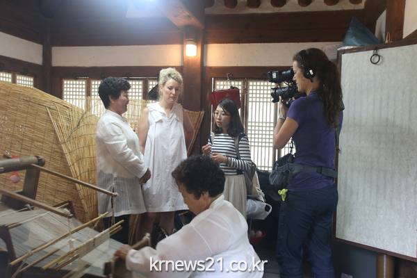 프랑스 최대의 민영방송 TF1이 18일 한산모시관을 찾아 1500년 역사의 한산모시 제작 과정에 대한 다큐멘터리 제작을 진행했다.