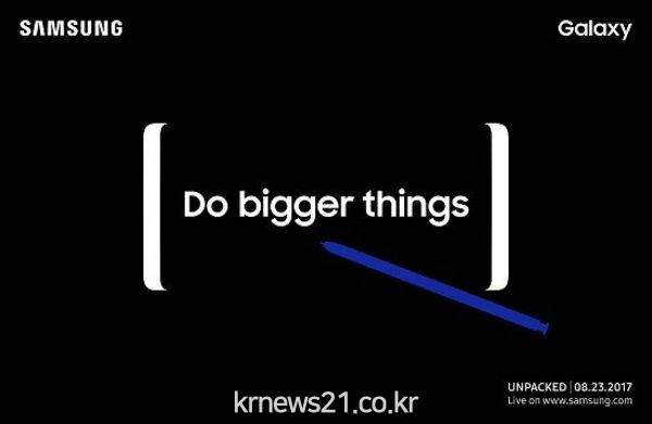 초청장에는 검정색 바탕에 갤럭시노트8의 윤곽이 하얀 테두리로, S펜의 모양이 푸른색으로 묘사됐다. 중앙에는 'Do bigger things'라는 메시지가 적혀있다.