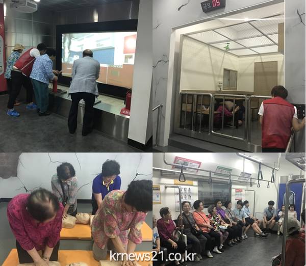 이번 안전교육체험은 어르신들이 긴급 상황을 직접 체험해봄으로써 대피방법을 습득하는 것으로, 해상풍수해체험, 지진 및 심폐소생술체험, 엘리베이터체험, 생활안전체험, 지하공간탈출체험을 진행했다.