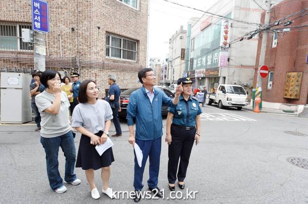 김포시는 지난 27일(목) 저녁 유영록 시장과 현춘희 경찰서장, 신명순·염선 시의원, CPO(범죄예방진단팀)가 합동으로 시범사업 예정인 사우동 돌문상가와 김포교육지원청 일대의 원룸 · 다세대 밀집지역을 직접 점검했다.