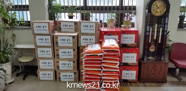 일신동 인근 부천 소재 송내 사랑의교회에서도 라면 30박스를 일신동의 침수가구에 기탁하는 한편, 함께 복구 작업도 벌였다.