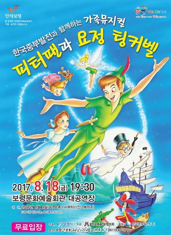 보령시는 여름방학을 맞아 오는 18일 오후 7시 30분, 보령문화예술회관 대공연장에서 가족뮤지컬‘피터팬과 요정 팅커벨’공연을 무대에 올린다.