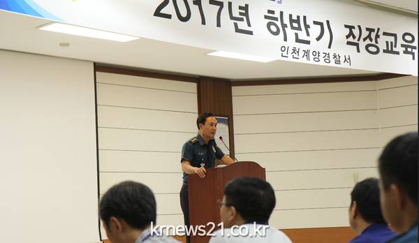 인천계양경찰서(서장 정진관)에서는 지난 10일부터 2일에 걸쳐 경찰서 4층 대강당에서 전 직원이 참석한 가운데 경찰 역량 향상과 공직자의 바른 가치관 함양을 위한 직장교육을 실시했다."고 밝혔다.