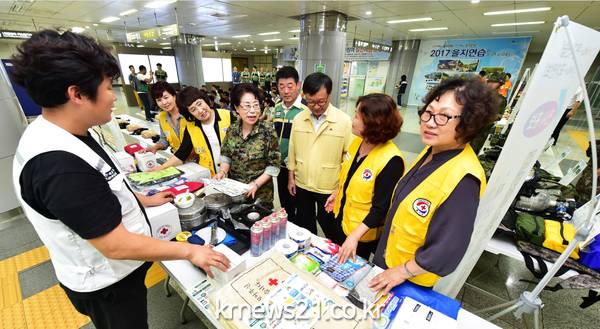 부평구는 23일 오후 2시부터 서울도시철도 7호선 부평구청역 지하1층에서 홍미영 부평구청장을 비롯해 민방위대원,주민,공무원,소방대원,군인,경찰 등 300여 명이 참여한 가운데 ‘2017 을지연습 실제훈련’을 가졌다.